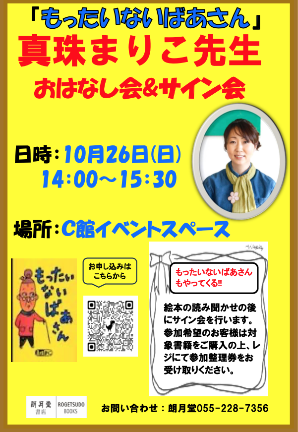 私も『もったいないばあさん』にこめた思い、20周年の絵本についてなどお話させていただきます。