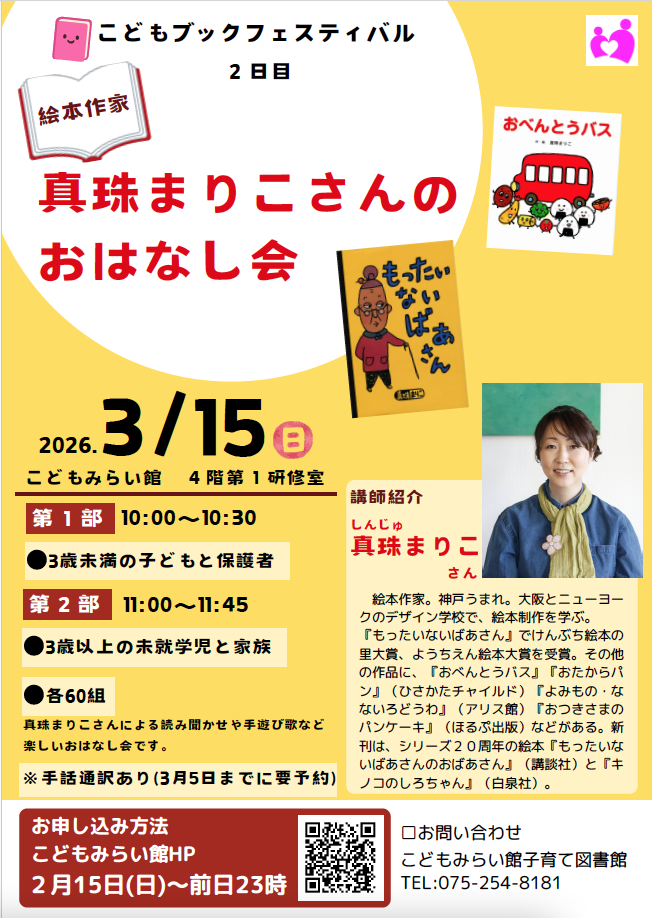 京都のこどもみらい館子育て図書館こどもブックフェスティバルにて、絵本のおはなし会があります。